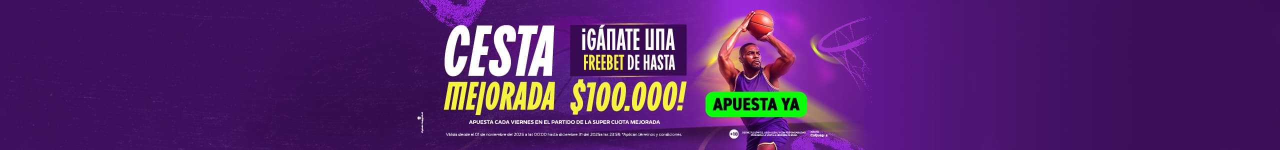 Especiales Fútbol Basketball Beisbol Tenis Parlay Características Casino Finalizadas Nuevo Bono Debut 200 MIL COP Te regalamos hasta 200 mil pesos* ¡Te damos el 100% de tu recarga hasta 200.000 pesos! Desde el 17 de marzo a las 00:00 horas, hasta el 31 de diciembre de 2026 a las 00:00 horas, te damos un bono del 100% de tu primera recarga desde el registro. Rollover x4 en cuotas de 2.00. […] Bono de registro $108 Mil, para apuestas deportivas. Nuestro departamento de scouting está en busca de los próximos refuerzos que nos acompañarán en el plantel de la casa de apuestas con más POWER del país y si crees que lo tienes todo para ser un crack, esta es tu oportunidad. Tenemos una promoción increíble que seguro te hará fichar por nosotros: Regístrate en […] Promo Recarga ¡En Wplay.co ahora recibes el 100% de tu recarga! Aplican TYC Términos y Condiciones: Vigencia: Esta promoción es válida a partir del 5 de marzo a las 00:00 horas y estará vigente hasta el 15 de noviembre o la vigencia del Decreto 0175 de 2025. 1Vigencia: período de tiempo durante el cual una norma, disposición, contrato, promoción o beneficio mantiene plena validez […] Promo Regreso de la NBA Cada viernes que juegas, al final del mes te llevas tu recompensa. Esta promoción es válida desde el 01 de noviembre del 2025 a las 00:00 hasta el 31 de diciembre 2025 a las 23:59. Realiza una apuesta por un valor mínimo de $10.000 cada viernes de cada semana al evento que contenga la super […] Batazo al Rescate Wplay.co te ofrece una BetW1 en todos los eventos de Playoffs1 de la MLB si en tu apuesta se dan 5 o más carreras si tu apuesta es perdedora. Esta promoción es válida desde el 30 de septiembre de 2025 desde las 00:00 hasta el 1 de noviembre del 2025 a las 23:59. El usuario […] WPRIMA Hemos creado un nuevo Parlay para tus apuestas de fútbol. Ahora puedes ganar hasta el 15% más en tus apuestas combinadas de las mejores ligas de fútbol del Mundo. Promoción valida a partir de las 00:00 del día 16 de septiembre de 2025 hasta las 23:59 del 31 de marzo de 2026. Te brindamos un […] Touchdown Ganador Wplay.co te ofrece una BetW1 en todos los eventos de NFL si en tu apuesta se dan 4 o más touchdown5 Esta promoción es válida desde el 4 de septiembre de 2025 desde las 00:00 hasta el 25 de enero del 2026 a las 23:59. Realiza una apuesta por un valor mínimo de $10.000 en […] Penalty Power La emoción de los penales traspasa fronteras y nos ponemos nerviosos tanto o más que los mismos jugadores… Y hoy, tú, te conviertes en el héroe, porque el penal decisivo, ¡el Penalty Power lo pateas tú para ganar! Participa en la promoción Penalty Power de Wplay.co donde podrás ganar increíbles premios con tan solo apostar […] MVP recargado ¡Wplay.co te ofrece un BetW1 del 50% de tu apuesta hasta máximo $50.000 Esta promoción es válida desde el 22 de octubre de 2024 a las 00:00: hasta el 13 de abril de 2025 a las 23:59:59. Realiza una apuesta por un valor mínimo de $5.000 a los eventos de la temporada regular de la […] EUROPA PARLAY FIN DE SEMANA CASHBACK DEL 10% HASTA $20.000 Wplay.co te ofrece una BetW1 del 10% hasta $20.000 si realizas una apuesta de al menos $20.000 en eventos de las siguientes ligas europeas: Premier League, La Liga, Serie A, Bundesliga y Ligue 1. En caso de que tu apuesta no resulte ganadora, recibirás el 10% del valor apostado como devolución. Válida Desde el domingo […] ¡Wplay.co te ofrece bono adicional del 20% en tu apuesta múltiple de tres deportes diferentes! Esta promoción es válida desde el 15 de septiembre de 2024 desde las 00:00 hasta las 23:59 del 31 de marzo de 2025. ¡Combina y Gana con Wplay.co! Realiza una apuesta en la que incluyas por lo menos 3 deportes diferentes, por valor de $15.000 en adelante y recibe un 20% adicional en tu premio […] Comparte Y Gana ¡Llega la promo donde tus amigos te ponen a ganar! Genera tu POWEROSO código de Wplay, compártelo por tus redes sociales y diles a tus amigos que se registren en Wplay utilizando tu código y comienza a ganar una bonificación en efectivo del 5% sobre el total de apuestas ganadas de todos tus invitados que […] Wplay te salva tu apuesta. Devolución en partidos 0 – 0 Ahora con Wplay si realizas una apuesta en cualquier partido de futbol y termina 0 - 0 te devolvemos tu dinero Nuevo Parlay de Básquetbol Wplay.co tiene un nuevo parley para que ganes mas al apostar en básquetbol Nuevo Parlay de Fútbol americano Wplay.co tiene un nuevo parley para que ganes mas al apostar en futbol americano Nuevo Parlay de Tenis Hemos creado un nuevo parley para que puedas ganar mas apostando a tus eventos favoritos de tenis Nuevo Parlay o Parlay de Deportes Norte Americanos Hemos creado un nuevo parley para que puedas ganar mas apostando a los deportes americanos Recuperar apuesta – cashout Recuperar Apuesta - CahsOut Deportes en Vivo Wplay.co presenta su mejorado Canal en Vivo WPRIMA Hemos creado un nuevo Parlay para tus apuestas de fútbol. Ahora puedes ganar hasta el 15% más en tus apuestas combinadas de las mejores ligas de fútbol del Mundo. Promoción valida a partir de las 00:00 del día 16 de septiembre de 2025 hasta las 23:59 del 31 de marzo de 2026. Te brindamos un […] ¡Wplay.co te ofrece bono adicional del 20% en tu apuesta múltiple de tres deportes diferentes! Esta promoción es válida desde el 15 de septiembre de 2024 desde las 00:00 hasta las 23:59 del 31 de marzo de 2025. ¡Combina y Gana con Wplay.co! Realiza una apuesta en la que incluyas por lo menos 3 deportes diferentes, por valor de $15.000 en adelante y recibe un 20% adicional en tu premio […] Wplay te salva tu apuesta. Devolución en partidos 0 – 0 Ahora con Wplay si realizas una apuesta en cualquier partido de futbol y termina 0 - 0 te devolvemos tu dinero ¡Apoya al Rebaño desde nuestro Palco jugando en Caliente.mx! Edit page excerpt field to edit this text ¡Vive la pasión Águila desde nuestro Palco jugand