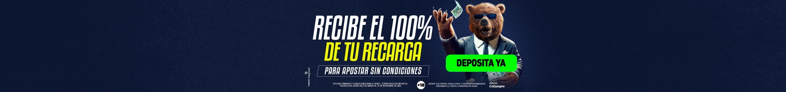¡En Wplay.co ahora recibes el 100% de tu recarga! Aplican TYC